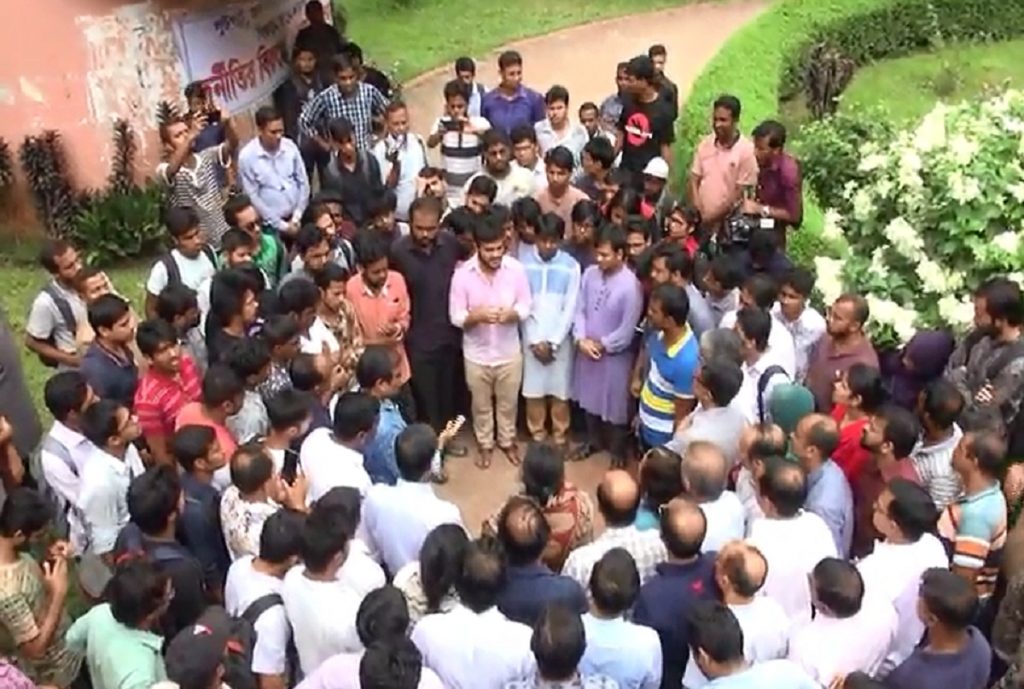 গাছ কেটে হল নির্মাণ বন্ধসহ তিন দফা দাবিতে তৃতীয় দিনের মতো জাহাঙ্গীরনগর বিশ্ববিদ্যালয়ের প্রশাসনিক ভবন অবরোধ করে রেখেছে আন্দোলনকারীরা।