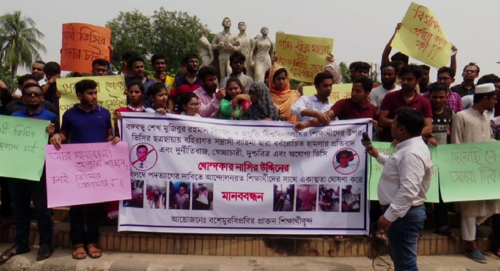 মানবন্ধন থেকে সাবেক শিক্ষার্থীরা দাবি করেন, ভিসি নাসির উদ্দিন নৈতিকভাবে দায়িত্ব পালনের যোগ্যতা হারিয়েছেন। নারী শিক্ষার্থীর সাথে সে জঘন্যতম আচরণ করে আইন অমান্য করেছেন বলেও অভিযোগ তাদের। যত দ্রুত সম্ভব ভিসিকে অপসারণ করে নতুন ভিসি নিয়োগ দিতে প্রধানমন্ত্রীর কাছে দাবি জানান আন্দোলনকারীরা।