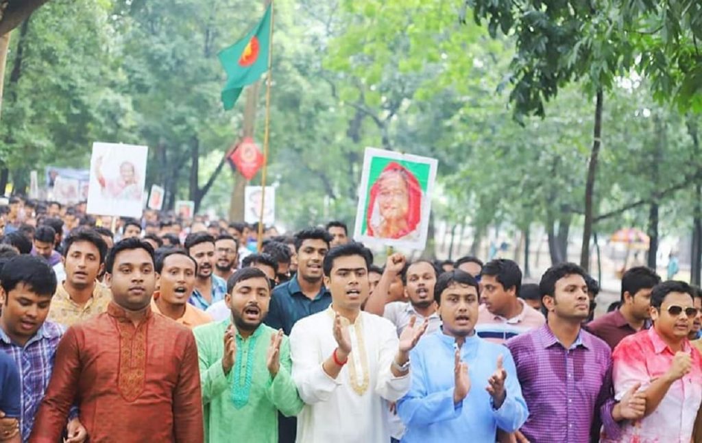 এর আগে বিভিন্ন হল থেকে ছাত্রলীগের নেতাকর্মীরা মিছিল নিয়ে মধুর ক্যান্টিনে জড়ো হন। সেখান থেকে মিছিলটি ক্যাম্পাস প্রদক্ষিণ করে। এসময়, শেখ হাসিনা ও বঙ্গবন্ধুর ছবিসহ ব্যানার ফেস্টুন বহন করেন নেতাকর্মীরা।