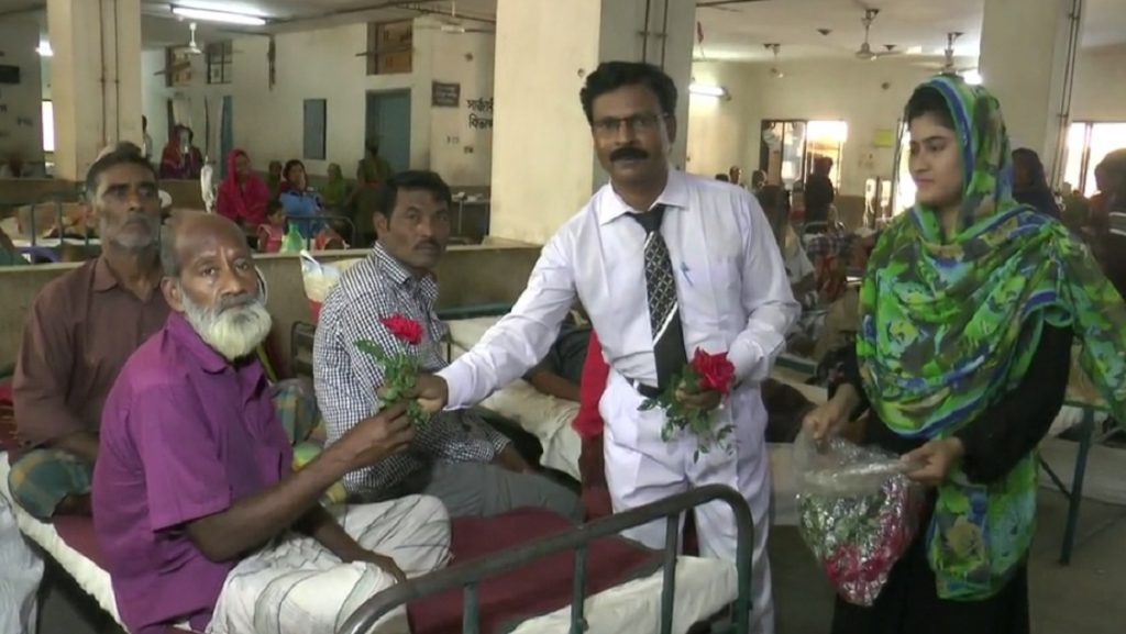 পরে হাসপাতালে কর্মরত নার্সদের মাঝেও তিনি ফুল বিতরণ করেন।