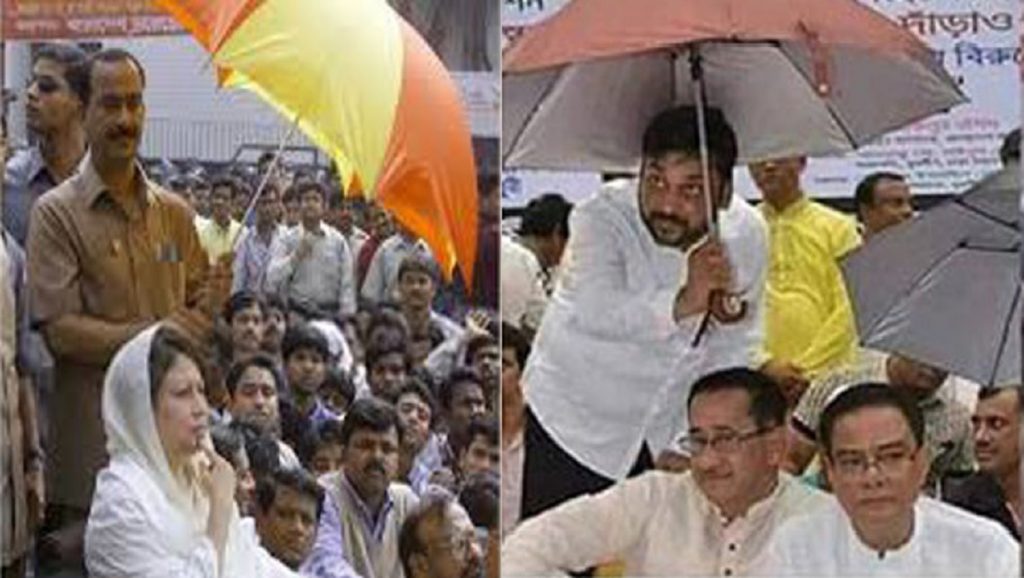 ছবিটিতে দেখা যাচ্ছে যুবলীগ চেয়ারম্যান ওমর ফারুকের মাথায় ছাতা ধরে আছেন সম্রাট। এই দুই ছবিকে এক করে ফেসবুকে পোস্ট দিচ্ছেন নেটিজেনরা। এই ছাতা ধরা নিয়ে মন্তব্য পরে দু’সময়ে দুজনের ধরা দুটি ছাতার মাঝে ক্ষমতার অপব্যবহারের প্রতীকী চিত্রই যেন খুঁজে পেয়েছে মানুষ। নেটিজেনদের মন্তব্য দেখে প্রশ্ন জাগতেই পারে, তবে কী ছাতা ধরাতেই কাল হলো!