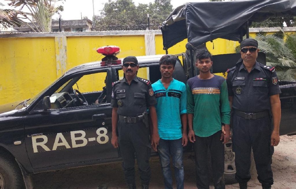 সোমবার ভোরে এ অভিযানে সাতক্ষীরা জেলার দেবহাটা থানার নোড়ারচক গ্রামের আবুল হোসেন এর ছেলে মনিরুল ইসলাম রিপন (২৮) ও একই থানার খালিসা খালী গ্রামের মো. রুস্তম সরদার এর ছেলে মো. আল-আমীন (২৩) কে আটক করা হয়।