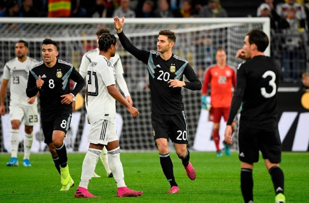 লাওতারো মার্টিনেজের মাথায় ছোঁয়া বল জার্মান ডিফেন্ডারের পায়ে না লাগলে ম্যাচের ৫ মিনিটেই এগিয়ে যেতে পারতো মেসিবিহীন আলবিসেলেস্তারা। উল্টো ম্যাচের ১৫ মিনিটে গ্যানাব্রির গোলে লিড পায় জার্মানি। এর ৭ মিনিট পর কাই হ্যাবার্টজের গোলে ২-০ তে এগিয়ে যায় জোয়াকিম লো’ শিষ্যরা। বদলি হিসেবে নামা লুকাস আলারিও ৬৬ মিনিটে একটি গোল শোধ করেন। আর অভিষিক্ত লুকাস ওক্যাম্পাস ৮৫ মিনিটে গোল করলে ২-২ গোলের ড্র নিয়ে মাঠ ছাড়ে লিওনেল স্কালোনির দল।