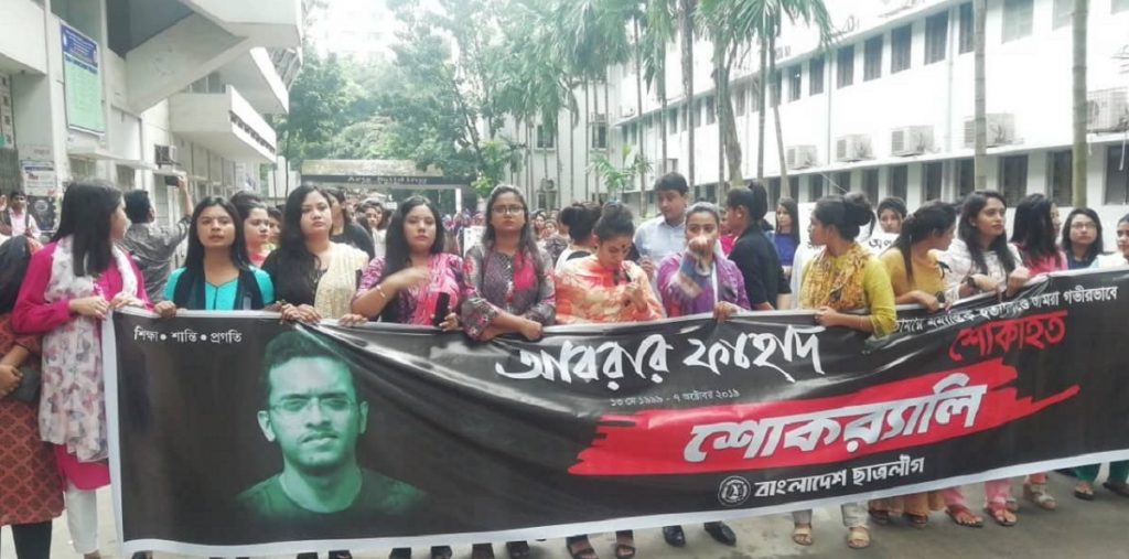 আজ বৃহস্পতিবার দুপুরে শোক র্যালিটি মধুর ক্যান্টিন থেকে শুরু হয়ে কেন্দ্রীয় শহীদ মিনার প্রদক্ষিণ করে মধুর ক্যান্টিনে এসে শেষ হয়। র্যালিতে ছাত্রলীগের ভারপ্রাপ্ত সভাপতি, সাধারণ সম্পাদকসহ নেতাকর্মীরা অংশ নেয়। এসময় তারা সুষ্ঠু তদন্ত করে আবরার হত্যার দোষীদের দৃষ্টান্তমূলক শাস্তির দাবি করেন।