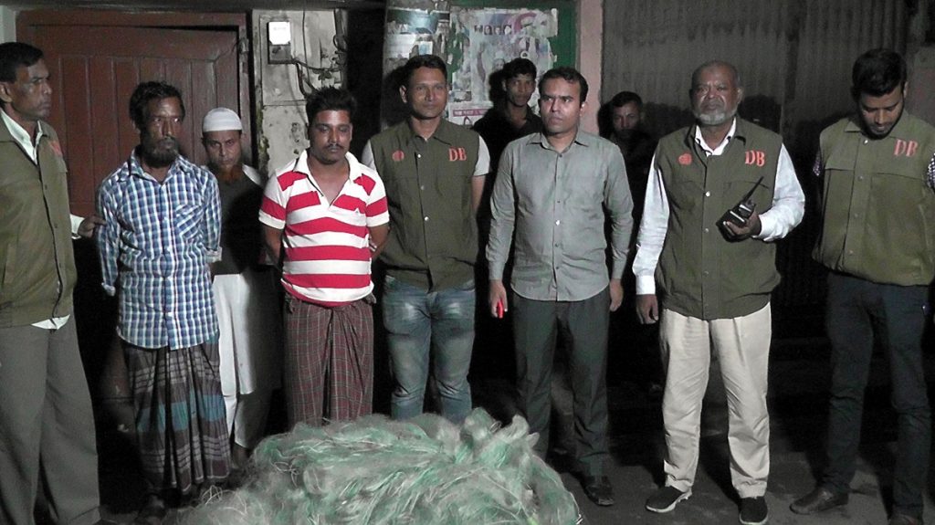 শুক্রবার গভীর রাতে ডিবির অফিসার ইনচার্জ ইকবাল বাহার খানের নেতৃত্বে অভিযান চালিয়ে নিষিদ্ধ আট হাজার মিটার কারেন্ট জালসহ মৌসুমী জেলে কাঞ্চন মোল্লাহ ও তার জামাতা সুমন হাওলাদারকে আটক করা হয়।