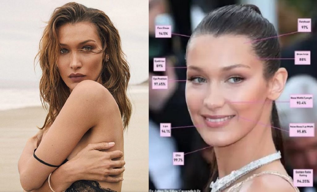 লন্ডনের প্রসিদ্ধ ফেসিয়াল কসমেটিকস সার্জন জুলিয়ান ডি সিলভা গবেষণাটি পরিচালনা করেছেন। তারকাদের গোল্ডেন রেশিও পরিমাপ করে তিনি বলেন, মুখমণ্ডলের বিচারে বেলা হাদিদ নিরঙ্কুশভাবে বিজয়ী হয়েছেন। তার মুখই সবচেয়ে নিখুঁত। চিবুকের জন্য তিনি সর্বোচ্চ স্কোর করেছেন ৯৯ দশমিক ৭ শতাংশ, যা নিখুঁত থেকে মাত্র দশমিক ৩ শতাংশ কম। তবে চোখের অবস্থানে নিখুঁত হওয়ার দিক থেকে তিনি স্কারলেট জোহানসনের পেছনে রয়েছেন। গড়নে বিয়ন্সে অনেক এগিয়ে থাকলেও কপাল ও ঠোঁটের কারণে পিছিয়ে গেছেন। সার্বিকভাবে সবার চেয়ে এগিয়ে আছেন বেলা।