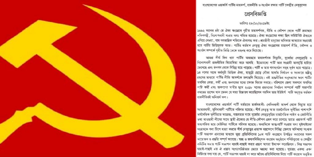 বিজ্ঞপ্তিতে বলা হয়, বাংলাদেশের ওয়ার্কার্স পার্টি বর্তমানে মার্কসবাদী-লেনিনবাদী আদর্শ থেকে বিচ্যুত হয়ে সংস্কারবাদী, সুবিদাবাদী পার্টিতে পরিণত হয়েছে। শীর্ষ নেতৃত্ব রাজনৈতিক দুর্নীতির পাশাপাশি অর্থনৈতিক দুর্নীতিতে আক্রান্ত, বাস্তবতার নামের বুর্জোয়া লেজুড়বৃত্তির রাজনৈতিক লাইন ও জোটনীতি তথা আওয়ামী লীগের সাথে স্থায়ী ঐক্যের যে নীতি ও কৌশল গ্রহণ করেছে তাতে করে ওয়ার্কার্স পার্টি দেউলিয়া পার্টিতে পরিণত হয়েছে। তাই আমরা ১০ম কংগ্রেস বর্জনের ঘোষণা দিচ্ছি এবং পার্টির সব কমরেডদের এই প্রহসনের কংগ্রেসে অংশ না নেয়ার আহ্বান জানাচ্ছি।