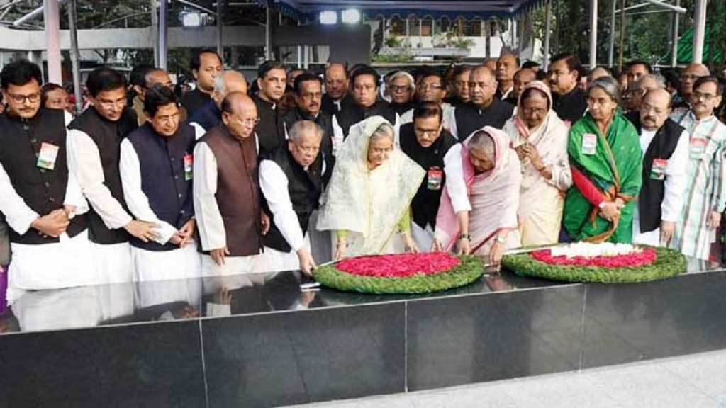 জেলহত্যা দিবসে বঙ্গবন্ধুর প্রতিকৃতিতে ফুল দিয়ে শ্রদ্ধা জানিয়েছেন প্রধানমন্ত্রী শেখ হাসিনা। আজ রোববার সকালে ধানমন্ডির ৩২ নম্বরে যান প্রধানমন্ত্রী। ফুল দিয়ে শ্রদ্ধা জানান জাতির জনকের প্রতিকৃতিতে। এরপর আওয়ামী লীগ সভাপতি হিসেবেও দলের নেতাকর্মীদের সাথে নিয়ে বঙ্গবন্ধুর প্রতি শ্রদ্ধা নিবেদন করেন শেখ হাসিনা।
