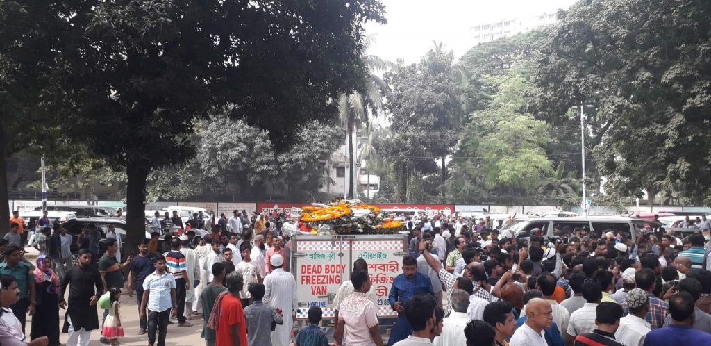 কেন্দ্রীয় শহীদ মিনারে সাদেক হোসেন খোকার মরদেহের প্রতি শ্রদ্ধা জানিয়েছেন সর্বস্তুরের মানুষ। এরপর কেন্দ্রীয় শহীদ মিনার থেকে মরদেহ নেয়া হবে নয়াপল্টনে। সেখানে বিএনপির কেন্দ্রীয় কার্যালয়ের সামনে হবে দ্বিতীয় জানাজা।