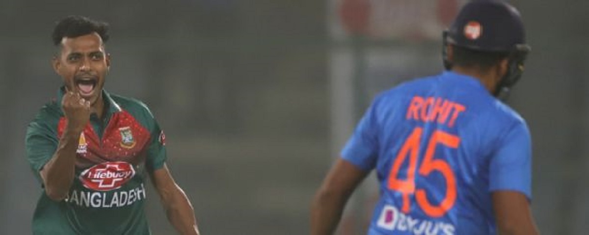 দলীয় ৩ রানের মাথায় শফিউলের বলে সাজঘরে গেলে রোহিত শর্মা। আল-আমিন দিয়ে ম্যাচের প্রথম ওভার করান অধিনায়ক মাহমুদুল্লাহ। এই ওভারে ৩ রান সংগ্রহ করে ভারত। এরপর ম্যাচের ২য় ওভারে সফলতা পায় বাংলাদেশ। ২য় ওভারের ৩য় বলে বোল্ড হয়ে সাজ ঘরে যায় আগের ম্যাচের জয়ের নায়ক রোহিত শর্মা।
