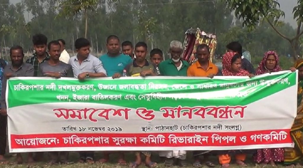 রেল নৌ ও গণ যোগাযোগ কমিটির রাজারহাট উপজেলা সভাপতিত্বে জাকির হোসেনের সভাপতিতে বক্তব্য রাখেন, রিভারাইন পিপলের পরিচালক ও বেগম রোকেয়া বিশ্ববিদ্যালয়ের সহযোগী অধ্যাপক ড.তুহিন ওয়াদুদ, চাকির পশার নদী রক্ষা কমিটির আহ্বায়ক খন্দকার আরিফ,সদস্য সচিব তারেক আহমেদ,সংগঠক গজেন্দ্র নাথ রায়,ক্ষতিগ্রস্ত কৃষক আব্দুল ওয়াহেদ মাষ্টার,স্থানীয় বাসিন্দা লিপি বেগম,সিরাজুল ইসলাম প্রমুখ।