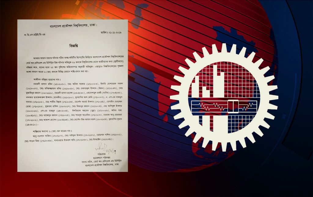 গতকাল বোর্ড অব রেসিডেন্স এন্ড ডিসিপ্লিন এর সদস্য সচিব ও বুয়েটের ছাত্র কল্যাণ পরিদপ্তরের পরিচালক অধ্যাপক মিজানুর রহমান স্বাক্ষরিত এক বিজ্ঞপ্তিতে এটি জানানো হয়।