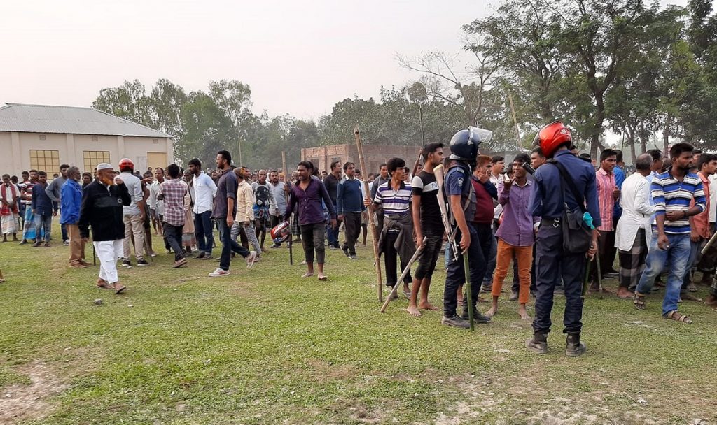 পুলিশ জানায়, আধিপত্য নিয়ে শ্রীরামপুর ইউনিয়নের সভাপতি পদ প্রার্থী আবুল হাসেমের সাথে আরেক প্রার্থী রফিকুল ইসলামের দীর্ঘদিনের বিরোধ চলছিলো। এরই জের ধরে কথা কাটাকাটির একপর্যায়ে, সংঘর্ষে জড়িয়ে পড়ে দু’পক্ষের সমর্থকরা। খবর পেয়ে রাবার বুলেট ও টিয়ারশেল ছুঁড়ে পরিস্থিতি নিয়ন্ত্রণে আনে পুলিশ। এসময় দুই পুলিশ সদস্যসহ আহত হয় অন্তত ১৫ জন। পরে আহতদের উপজেলা স্বাস্থ্য কমপ্লেক্স ও রংপুর মেডিকেল কলেজে ভর্তি করানো হয়।