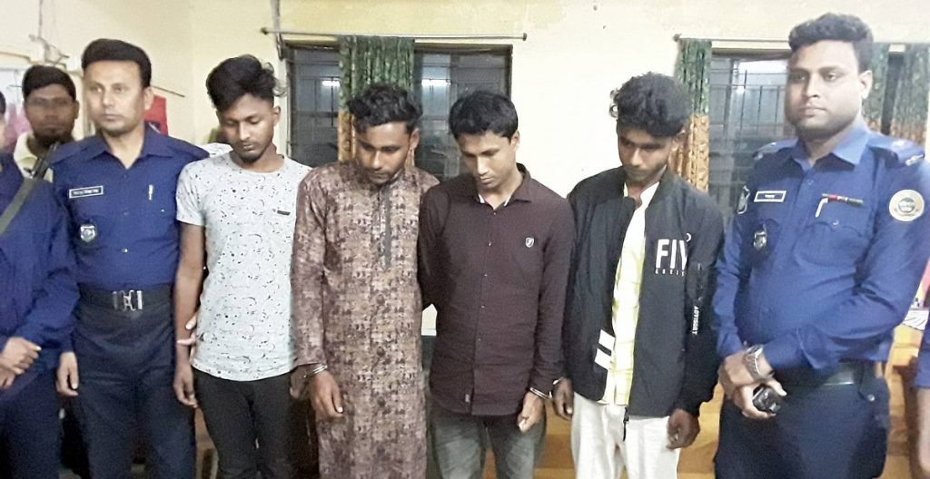 আটককৃতরা হলো সরোয়ার, নোমান, হাসান গাজী ও নাজমুল। বাড়ি উপজেলার কুমিরমারা গ্রামে। সবার বয়স ১৯-২০ বছর।