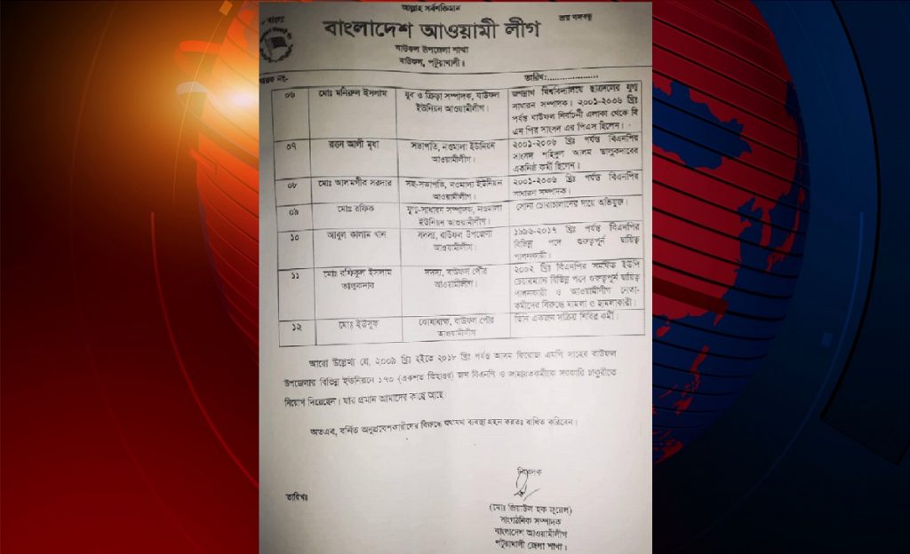 বিএনপি জামাত জোট সরকারের সময় শিবিরের সক্রিয় নেতা মোঃ ইউসুফকে করা হয়েছে বাউফল পৌর আওয়ামী লীগের কোষাধ্যক্ষ। এক সময়ে ছাত্রদলের যুগ্ম সাধারণ সম্পাদক মোঃ রিয়াজুল ইসলাম সিকদারকেও পদ দেয়া হয়েছে।