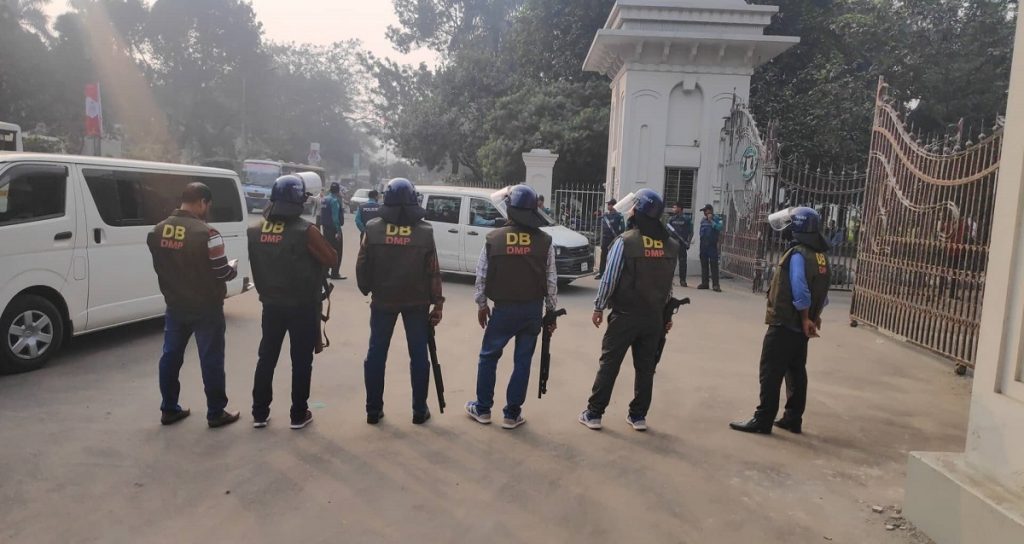 আদালতের প্রতিটি ফটকে নিরাপত্তায় পুলিশ সদস্য মোতায়েন করা হয়েছে। মূল ফটকগুলো দিয়ে ঢোকার সময় আগত ব্যক্তিদের পরিচয়পত্রও দেখাতে হচ্ছে।