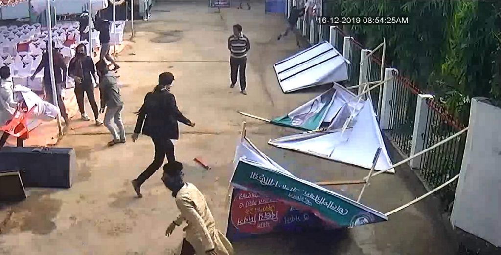 বেলা ১১টায় আলোচনা সভা ও মুক্তিযোদ্ধাদের সংবর্ধনা অনুষ্ঠানের আয়োজন করে ব্রাহ্মণবাড়িয়া জেলা পরিষদ। অনুষ্ঠান শুরুর আগেই মুখোশপরা কয়েকজন দুর্বৃত্ত সভাস্থলের চেয়ার ভাঙচুর করে। ছিড়ে ফেলে বঙ্গবন্ধু ও শেখ হাসিনার ছবিযুক্ত ব্যনার-পোস্টার। যা ধরাও পড়ে সিসিটিভি’তে। এ ঘটনায় ক্ষুব্ধ প্রতিক্রিয়া জানান মুক্তিযোদ্ধারা।