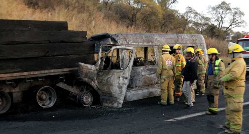 বুধবার, জালিসকো রাজ্যের পার্বত্য এলাকায় কাঠের গুড়ি বোঝাই একটি ট্রাককে নিয়ন্ত্রণ হারিয়ে ধাক্কা দেয় যাত্রীবাহী ভ্যানটি। মুহূর্তেই, সিলিন্ডার বিস্ফোরণে ছড়িয়ে পড়ে আগুন। ফায়ার সার্ভিস জানিয়েছে, মৃতদেহগুলো ছিন্ন-বিচ্ছিন্ন হয়ে যাওয়ায় পরিচয় শনাক্ত করতে কষ্ট হচ্ছে। চলছ ময়নাতদন্ত।