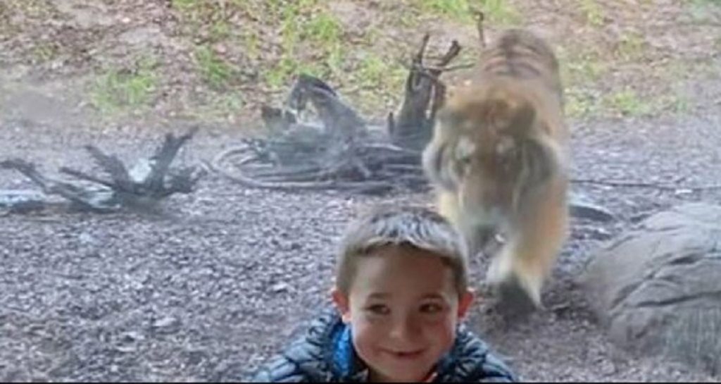 ভিডিওতে দেখা গেছে, চিড়িয়াখানায় বাঘের ঘরের সামনে বসে সেলফি তোলার জন্য পোজ দিচ্ছিল শিশুটি। একেবারে পেছনেই ছিল প্রকাণ্ড সেই বাঘ। অনেকক্ষণ থেকেই শিকারের উদ্দেশে শিশুটিকে চোখে চোখে রাখছিল বাঘটি। যেই না শিশুটি পেছনে ফিরে তাকাল মুহূর্তের মধ্যে শিকার করতে তার ওপর ঝাঁপিয়ে পড়ল বাঘ। কিন্তু ব্যর্থ হলো সে। কাঁচের সঙ্গে ধাক্কা খেয়ে নিচে পড়ে গেল সে।