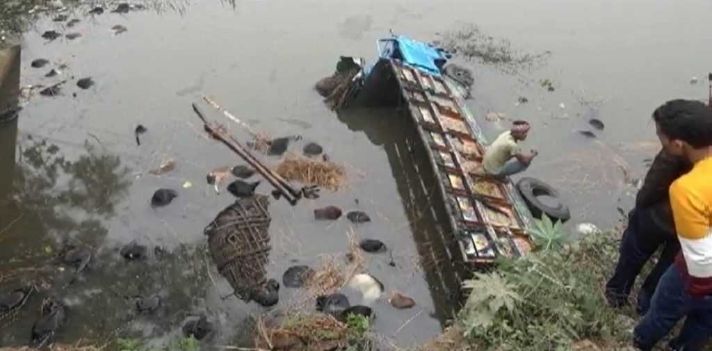 পুলিশ জানায় রাতে জয়পুরহাট থেকে ছাগল বোঝাই একটি ট্রাক রাজধানীর গাবতলীর উদ্দেশে যাওয়ার পথে ট্রাকটি সকালে ঢাকা আরিচা মহাসড়কের সাভারের জোরপুল এলাকায় পৌঁছলে নিয়ন্ত্রণ হারিয়ে মহাসড়কের পাশে একটি পুকুরে পড়ে যায়।