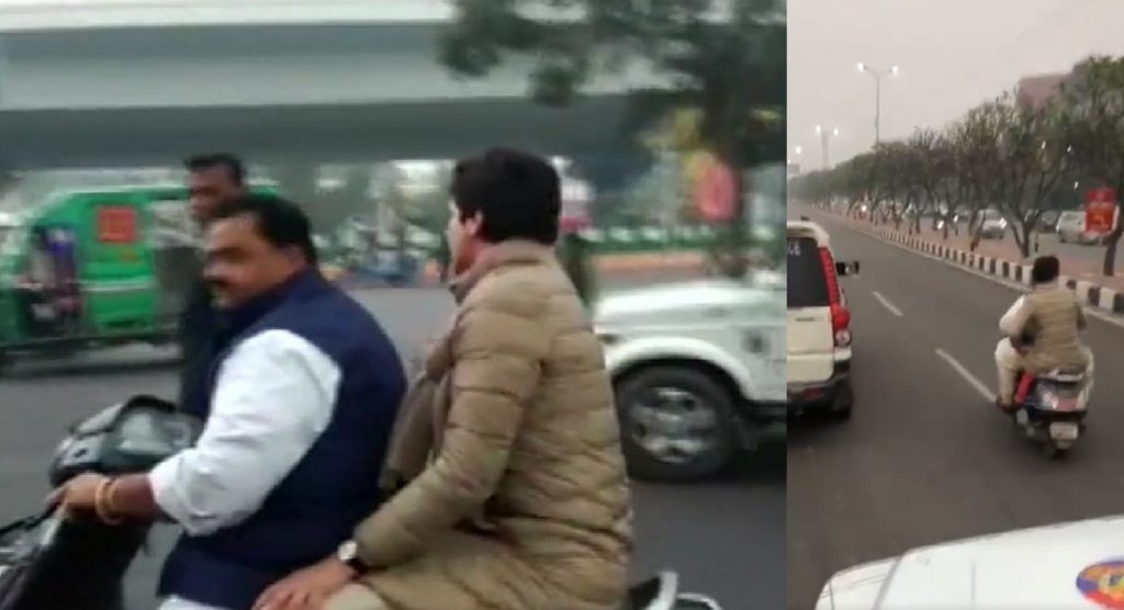 স্কুটারে চাপার পরে চালকের পিছনে বসা প্রিয়াঙ্কা গান্ধীর মাথায়ও কোনো হেলমেট ছিল না। স্কুটারটির মালিক হলেন কংগ্রেস নেতা ধীরজ গুজ্জর।
