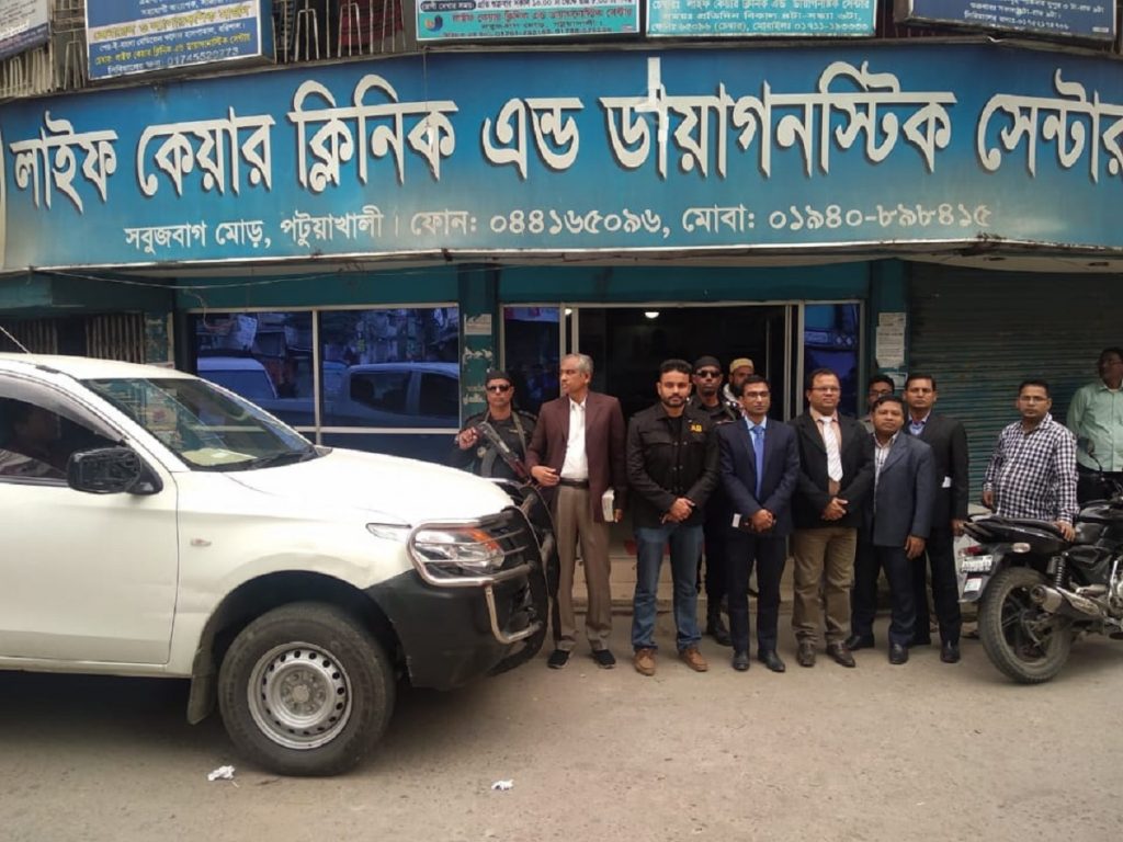 নোংরা পরিবেশ, মেয়াদোত্তীর্ণ ওষুধ রাখাসহ বিভিন্ন অপরাধের দায়ে পটুয়াখালী শহরের সবুজবাগ এলাকার লাইফ কেয়ার ক্লিনিক ও ডায়াগনস্টিক সেন্টারকে দুই লাখ পাঁচ হাজার টাকা জরিমানা করেছে র্যাপিড অ্যাকশন ব্যাটালিয়নের (র্যাব) ভ্রাম্যমাণ আদালত।