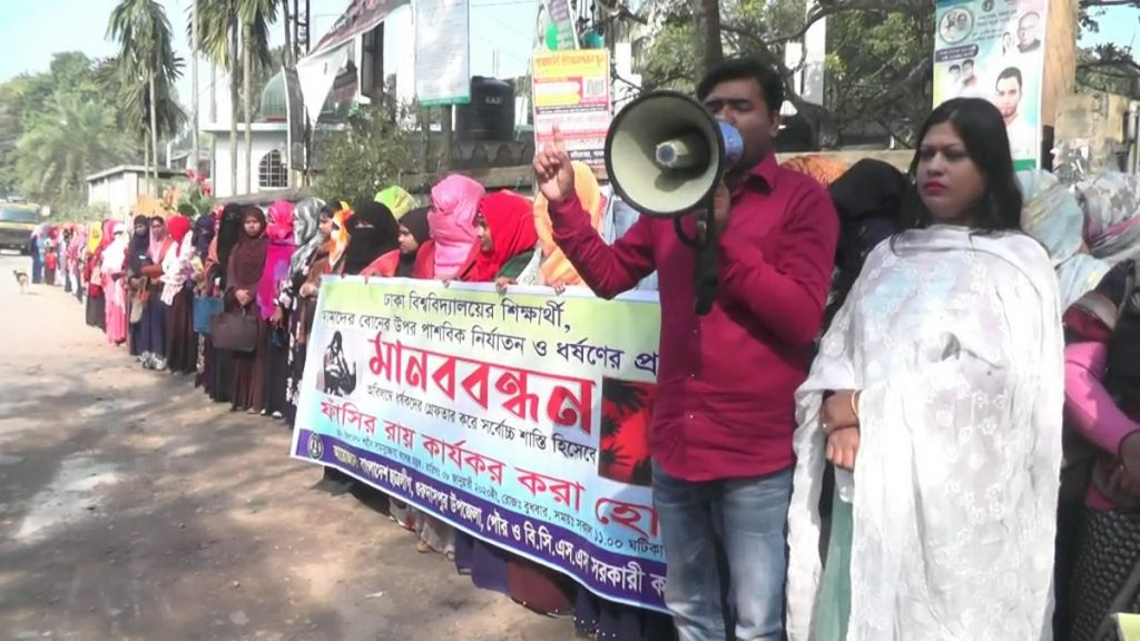 এসময় বক্তরা বলেন, দ্রুত সময়ের মধ্যেই ঢাকা বিশ্ববিদ্যালয়ের শিক্ষার্থীর ধর্ষক মজনুকে আইনের আওতায় এনেছে আইনশৃঙ্খলাবাহিনি। এখন ধর্ষকের দৃষ্টান্তমূলক শাস্তি দিতে হবে। যাতে ভবিষৎতে কেউ আর এমন অপরাধ করার সাহস না পায়।