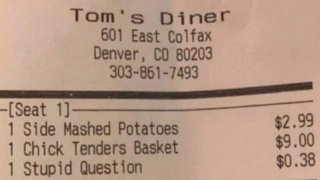 সম্প্রতি ডেনভারের ওই রেস্তরাঁয় ‘বোকা বোকা প্রশ্ন’ করে খাবার বিলের সঙ্গে অতিরিক্ত বিল মেটাতে হল কাস্টমারকে। ওই বিলের কাগজ ইতিমধ্যে দেশটির সোশ্যাল মিডিয়ায় ভাইরাল হয়েছে। এ নিয়ে হাস্যরসে মেতেছেন অনেকে। কেউ কেউ আবার বিষয়টিকে বাড়াবাড়ি বলেও মত দিয়েছেন।