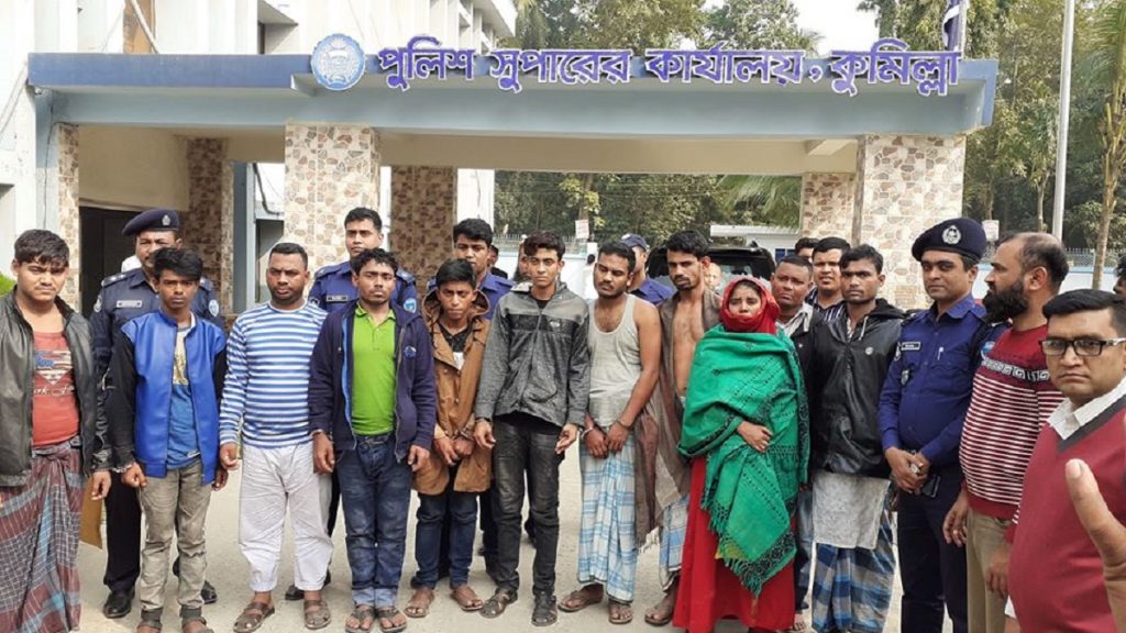 আটককৃতরা হলেন, কুমিল্লা সদর দক্ষিণ উপজেলার দিশাবন্দ এলাকার মৃত জাহাঙ্গীরের ছেলে জহির হোসেন (২৪), একই এলাকার শহীদুল ইসলামের ছেলে জহিরুল ইসলাম (২৫), একই উপজেলার উত্তর রামপুর এলাকার মৃত আবুল হোসেন ছেলে কামরুল হাসান সবুজ (২৬), আব্দুল কুদ্দুসের ছেলে ফেরদৌস হোসেন (২৮), মৃত মহাতব হোসেনের ছেলে কামাল হোসেন (৪৫), চৌদ্দগ্রাম উপজেলার সুয়ারখিল এলাকার ফারুক আহম্মদেও ছেলে ফাহিম আহম্মদ (২২), একই উপজেলার মোস্তাপুর এলাকার আব্দুল ওহাবের ছেলে নেয়ামত উল্লাহ (২৫), শ্রীমন্তপুর এরাকার জয়নাল আবেদীনের ছেলে মো. জুয়েল ওরপে আকাশ,উত্তর রামপুর এলাকার আবদুল কুদ্দুসের স্ত্রী মনোয়ারা বেগম (৪৫), ছেলে বুলেট (২৮) এবং চাঁদপুর জেলার হাজীগঞ্জ উপজেলার রামপুর এরাকার আনোয়ার হোসেনের ছেলে সুমন হাসান (২৮)।