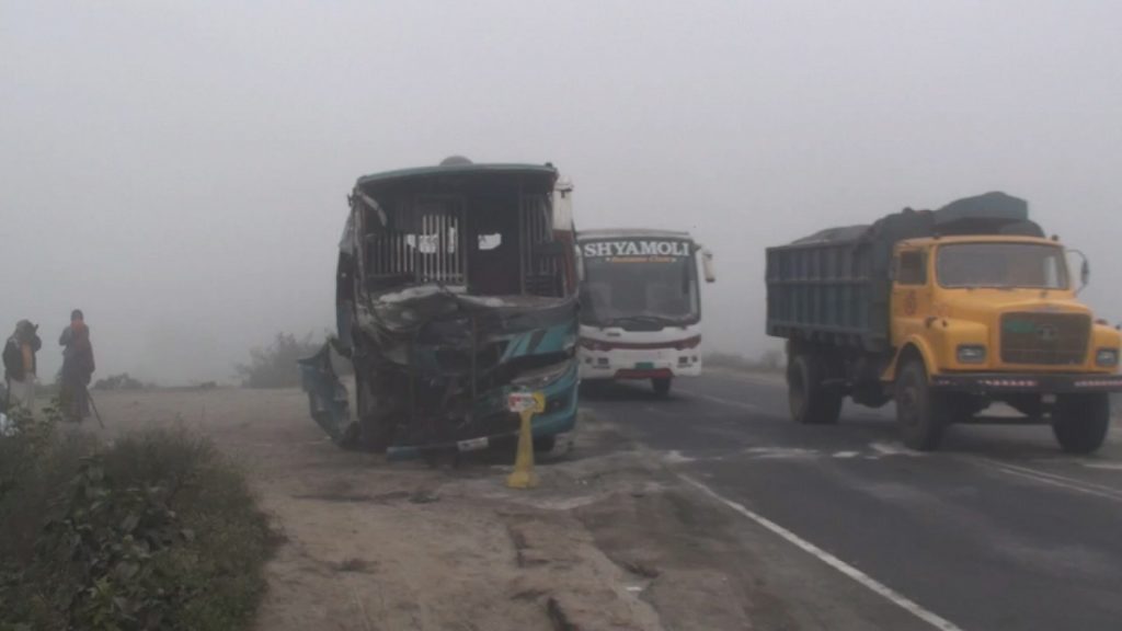 অপর দিকে সকাল সাড়ে ৭টার দিকে ঘনকুয়াশার কারণে বঙ্গবন্ধু সেতুর পূর্বপ্রান্তে টোলপ্লাজা সংলগ্ন এলাকায় উত্তরবঙ্গগামী একটি বাস অপর একটি গাড়ীকে ওভারটেক করতে গেলে সংঘর্ষ হয়। এতে ঘটনাস্থলেই একজন মারা যায়।
