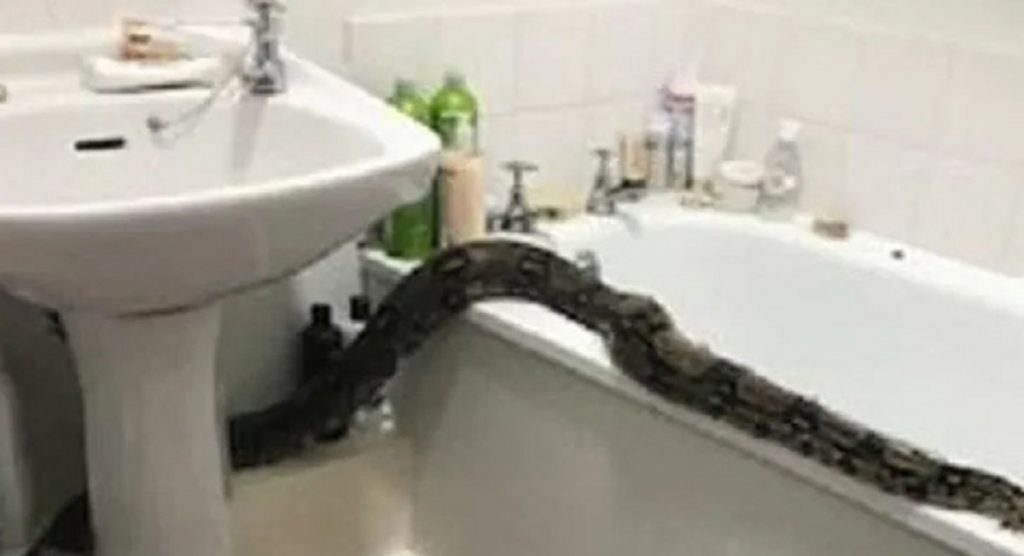 আট ফুট দীর্ঘ এই সাপটি রয়েছে ঠিক তার বাথরুমের বাথটাবের গা ঘেঁষে। যেন মনে হচ্ছে, ওই নারীকে সে বলছে– এসো, আজ আমরা একসঙ্গে বাথটাবের পানিতে গোসল করি!-খবর এনডিটিভির