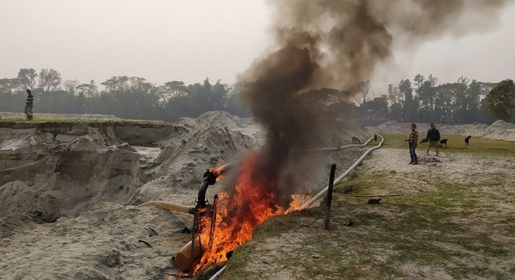 ভ্রাম্যমাণ আদালতের নির্বাহী ম্যাজিস্ট্রেট মোঃ বেলাল হোসেন জানান, বালু মহাল ও মাটি ব্যবস্থাপনা আইন-২০১০ এর আওতায় এ ভ্রাম্যমাণ আদালত পরিচালনা করা হয়। এসময় বালু ব্যবসায়ীরা পালিয়ে গেলে ঘটনাস্থলে জব্দ করা বালু উত্তোলনের মেশিন ও অন্যান্য যন্ত্রপাতি পুড়িয়ে দেয়া হয়।