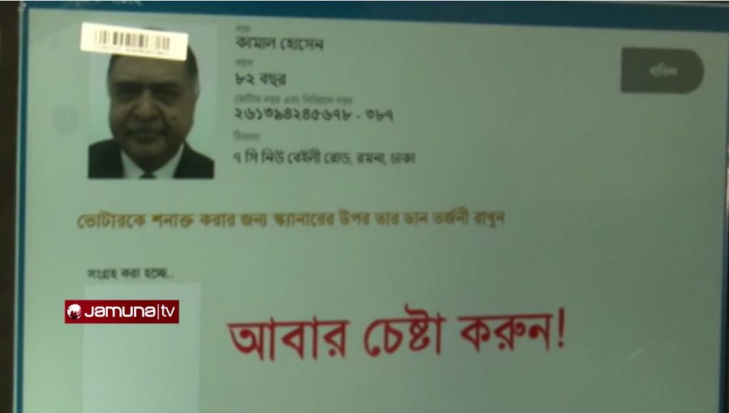 সকালে ভিকারুননিসা নূন স্কুল এন্ড কলেজে ভোট দিতে গিয়ে বিড়ম্বনায় পড়েন গণফোরামের সভাপতি ড. কামাল হোসেন। প্রথমে ফিঙ্গার প্রিন্ট না মেলায় দীর্ঘ সময় লাগে তার ভোট প্রদানে। বেশি বিড়ম্বনায় পড়তে হচ্ছে বয়স্ক ও শ্রমজীবী মানুষের। হাত ধুয়ে ও টিস্যু দিয়ে আঙ্গুল মুছেও ফিঙ্গার প্রিন্ট মেলানোর চেষ্টা করেন অনেকে। কেউ কেউ তারপরও ব্যর্থ হওয়ার অভিযোগ করেন। জাতীয় পরিচয়পত্রের মাধ্যমে ভোটার শনাক্তের কাজ করেন কর্মকর্তারা। অনেকে আবার কেন্দ্রে যাওয়ার পরই কিভাবে ভোট দেবেন সেটা শিখছেন। এতে, ভোটগ্রহণের ধীর গতি দেখা যায়।