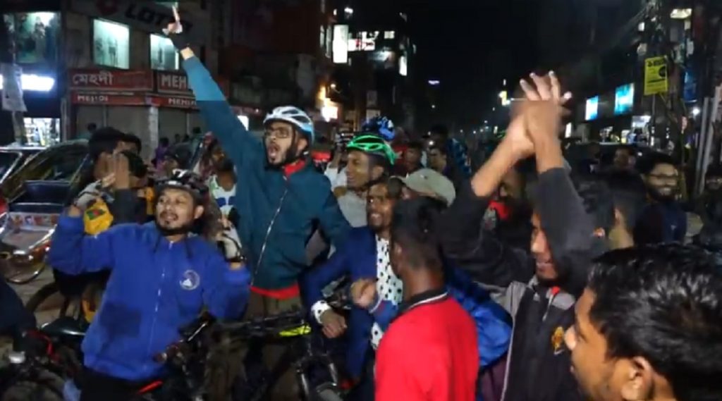 হাজার মাইল দূরে দক্ষিণ আফ্রিকায় অনুর্ধ্ব ১৯ বিশ্বকাপ ক্রিকেটের শিরোপা নিশ্চিত হতেই আনন্দ-উচ্ছ্বাসে মেতে উঠে বাংলাদেশের কোটি কোটি ক্রিকেটপ্রেমী । মূহুর্তেই বাসা বাড়ি থেকে নেমে আসেন রাস্তায়। বেরিয়ে পড়েন আনন্দ মিছিল নিয়ে।