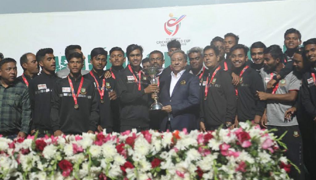 আড়ম্বর অনুষ্ঠানে মিরপুরের হোম অব ক্রিকেটে যুব বিশ্বকাপ চ্যাম্পিয়ন বাংলাদেশকে বরণ করে নিলো বিসিবি। আকবল আলীদের জাতীয় দলের জন্য পস্তুত করতে দুই বছর মেয়াদি প্রশিক্ষণ করার কার্যক্রম পরিচালনা করার ঘোষণা দিলেন বিসিবি সভাপতি নাজমুল হাসান পাপন।
