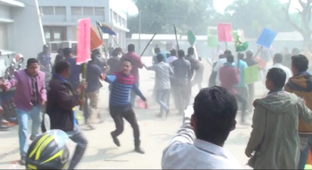 নেতাকর্মীদের অভিযোগ, পিআইও নুরুন্নবী’র পক্ষ অবলম্বন করে উপজেলা ছাত্রলীগ নেতা সুমন আন্দোলনকারীদের হাত থেকে প্লে কার্ড ছিনিয়ে নিয়ে হামলা করে। পরে তার সঙ্গে আরও ১৫-২০ জন তাদের ওপর হামলা চালায়। হামলার ঘটনায় গেটে থাকা বঙ্গবন্ধুর জন্ম শতবার্ষিকীর ক্ষণগণনা (কাউন্ট ডাউন) ভাঙচুরসহ ৪-৫ জন নেতাকর্মী গুরুতর আহত হয়। আহতরা বর্তমানে হাসপাতালে চিকিৎসাধীন রয়েছে।