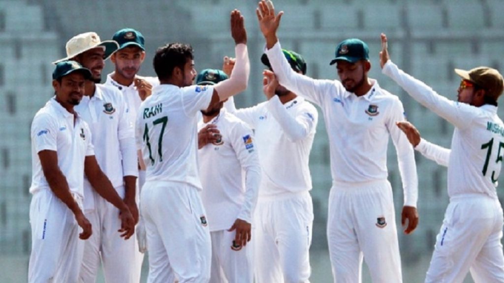 আগের দিনের ২২৮ রান নিয়ে খেলা শুরু করেন দুই অপরাজিত ব্যাটসম্যান চাকাভা আর তিরিপানো। দিনের ৭ম ওভারে তিরিপানোকে উইকেটরক্ষক লিটন দাসের হাতে তালুবন্দি করেন আবু জায়েদ রাহী। ৮ রান করে আউট হন তিরিপানো। এর পরের ওভারে আবারো আঘাত হানেন রাহী। এইন্সলেকে লেগবিফোরের ফাঁদে ফেলেন এই পেসার। রাহীর পর বল হাতে জ্বলে ওঠেন তাইজুলও। প্রথমে চার্লটন আর দলীয় ২৬৫ রানে চাকাভাকে ফিরিয়ে অল আউট করেন জিম্বাবুয়েকে।