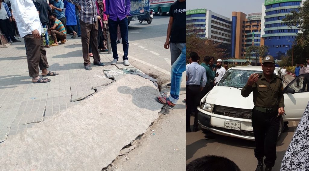 প্রত্যক্ষদর্শী সূত্রে জানা গেছে, ফুটপাতে বাসের জন্য অপেক্ষা করছিল যাত্রীরা। এ সময় একটি প্রাইভেটকার রাস্তার বাম দিকে ঢুকে যায়। একই সময় একটি বাসও স্টপেজে থামে। তখন প্রাইভেট কারের চালক নিয়ন্ত্রণ হারিয়ে ফুটপাতে গাড়ি তুলে দেন। এসময় ফুটপাতে থাকা অন্তত ১৪ জন আহত হন।