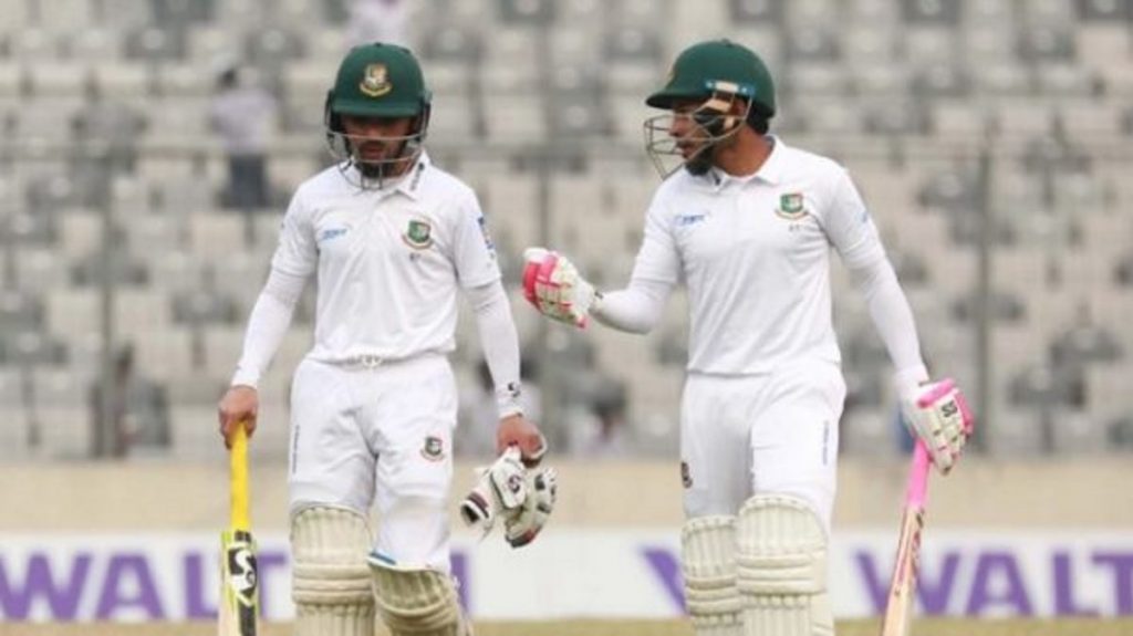 ভাইরাল হওয়া ছবিতে দেখা যাচ্ছে, সীমানা দড়ির কাছে দাঁড়িয়ে মুমিনুল হককে আঙুল দিয়ে এক সঙ্গে নির্দেশনা দিচ্ছেন প্রধান কোচ রাসেল ডমিঙ্গো, পেস বোলিং কোচ ওটিস গিবসন আর স্পিন বোলিং কোচ ডেনিয়েল ভেট্টোরি।