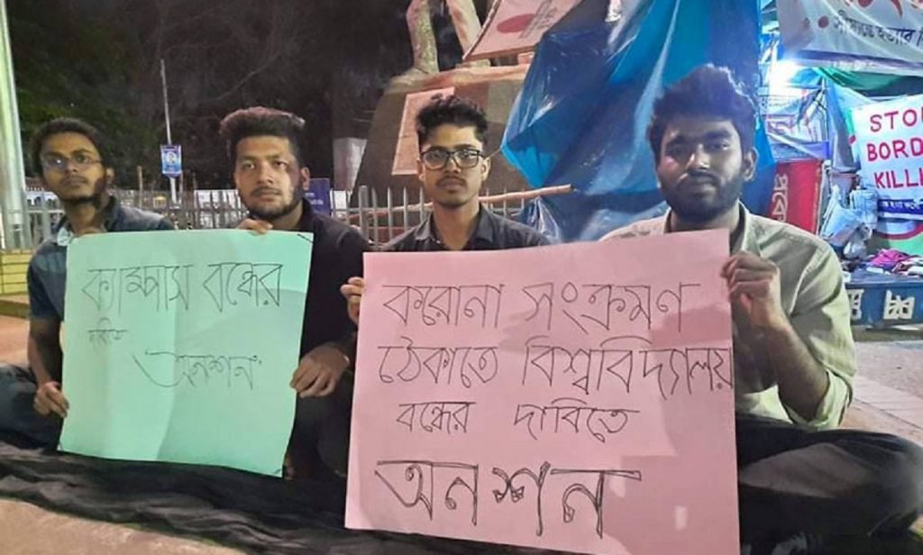 করোনাভাইরাসের ঝুঁকি মোকাবেলায় অবিলম্বে ঢাকা বিশ্ববিদ্যালয় বন্ধের দাবিতে অনশন শুরু করেছে পাঁচ শিক্ষার্থী। রাতে ক্যাম্পাসের রাজু ভাস্কর্যের পাদদেশে অনশন শুরু করেন তারা।