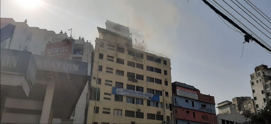 রোববার দুপুর ২টা ৫২ মিনিটে ৯ তলা ভবনের সাত তলায় এ আগুন লাগে।