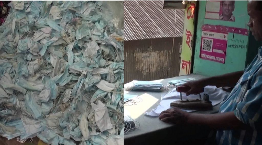 করোনা আতঙ্ককে কাজে লাগিয়ে গাজীপুরের টঙ্গীতে হাসপাতালের ব্যবহৃত মাস্ক ও হ্যান্ড গ্ল্যাভস শ্যাম্পু দিয়ে ধুয়ে আবার বিক্রি নাছির (৩৫) নামের এক ব্যক্তি।