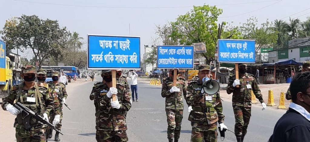 এসময়, জেলা ম্যাজিস্ট্রেট এর সমন্বয়ে সেনাবাহিনী বিভাগীয় ও জেলা শহর গুলোতে সামাজিক দূরত্ব ও সতর্কতামূলক ব্যবস্থা গ্রহণের জন্য সাধারণ জনগণকে উৎসাহিত করছে। পাশাপাশি তারা বিদেশ ফেরত ব্যক্তিদের বাধ্যতামূলক কোয়ারেন্টাইন এর বিষয়টিও পর্যবেক্ষণ করছে।