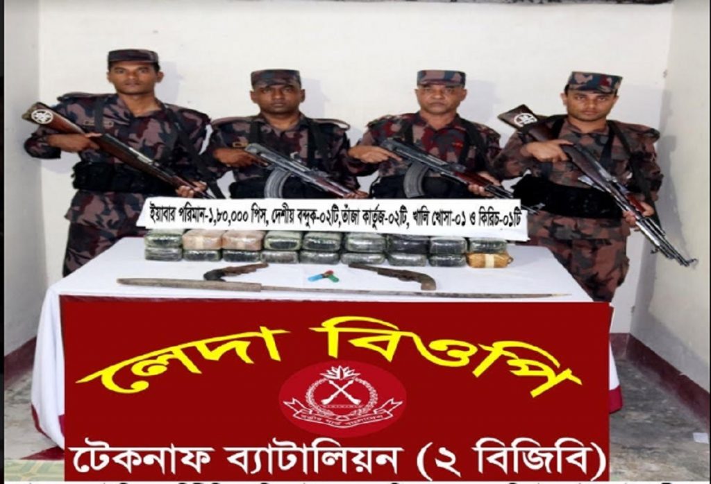 টেকনাফস্থ বর্ডার গার্ড বাংলাদেশ (বিজিবি) দুই ব্যাটালিয়ন অধিনায়ক লে.কর্নেল ফয়সল হাসান খান জানান, শুক্রবার দিনগত মধ্যরাতে হ্নীলা ইউনিয়নের লেদা এলাকা হতে মাদকের চালান পাচার হয়ে আসতে পারে এমন সংবাদের ভিত্তিতে টহলদল সেখানে অবস্থান নেয়। এসময় ৪/৫ জন মাদক কারবারী নাফ নদী অতিক্রম করে মাদকের চালান নিয়ে আসার সময় বিজিবি টহল দল ধাওয়া করলে তারা বিজিবি সদস্যদের উপর অতর্কিত গুলিবর্ষণ করে। বিজিবিও আত্মরক্ষার্থে পাল্টা গুলিবর্ষণ করে।