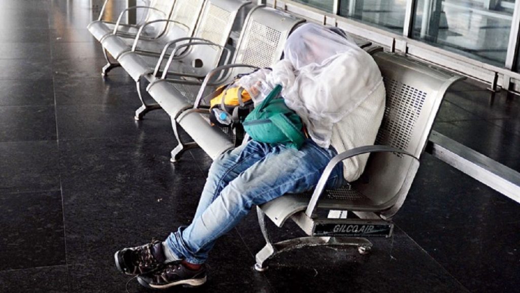 করোনা পরিস্থিতি এমন অনেক অভিজ্ঞতা দিচ্ছে মানুষকে যা আগে কেউ ভাবেনি। ছবির এই তরুণীর কথাই ধরুন না; পরনে আধভেজা, ময়লা ডেনিম। গায়ে সাদা ফুলহাতা সোয়েটার। পায়ে মোজা, স্নিকার্স। কোলে ছোট একটা সবুজ ব্যাগ। পাশে বড় আর একটি ব্যাগ। ৩ দিন ধরে নিস্তব্দ বিমানবন্দরে একা পার করতে হলো তাকে। নাওয়া-খাওয়া ছাড়া এই নিঃসঙ্গতা তাকে ডিপ্রেসনের রোগী বানিয়ে দিয়েছে।