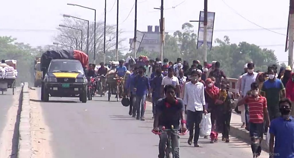বিভিন্ন স্থান থেকে ছোট ছোট যানবাহনে করে, পায়ে হেঁটে, যে যেভাবে পারছেন কর্মস্থলে ফিরছেন। গণপরিবহন বন্ধ থাকায় চরম ভোগান্তি পোহাতে হচ্ছে তাদের। গতকাল সকাল থেকেই হাজার হাজার শ্রমিক সাভার, গাজীপুর ও রাজধানীতে ফিরতে শুরু করেন।