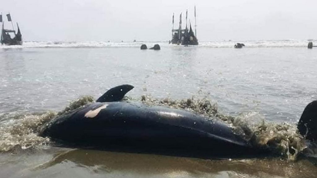 স্থানীয়রা জানায়, পাঁচটি ডলফিন সৈকতে মৃত অবস্থায় পড়ে থাকতে দেখে তারা। ডলফিনগুলোর পিঠে আঘাতের চিহ্ন রয়েছে।
