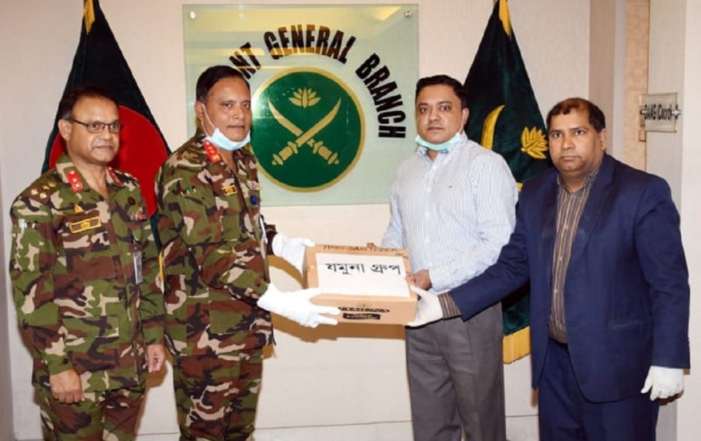 এর আগে, প্রধানমন্ত্রীর ত্রাণ তহবিলে ১০ কোটি টাকা আর সরকারি হাসপাতালসমূহে বিনামূল্যে সরবরাহ করার জন্য ঔষধ প্রশাসন অধিদপ্তরের মহাপরিচালক মেজর জেনারেল মাহবুবুর রহমানের নিকট ৮,০১৬ পিস পিপিই, ১০,০৫৬ পিস যমুনা হ্যান্ড স্যানিটাইজার ও ১৫,০০০ পিস ফেস মাস্ক প্রদান করেছে যমুনা গ্রুপ। দেশের এই মহাদুর্যোগে বাংলাদেশ সরকার ও সেনাবাহিনীর পাশে থাকার জন্য সেনাপ্রধানের পক্ষ হতে যমুনা গ্ৰুপকে ধন্যবাদ জানানো হয়।