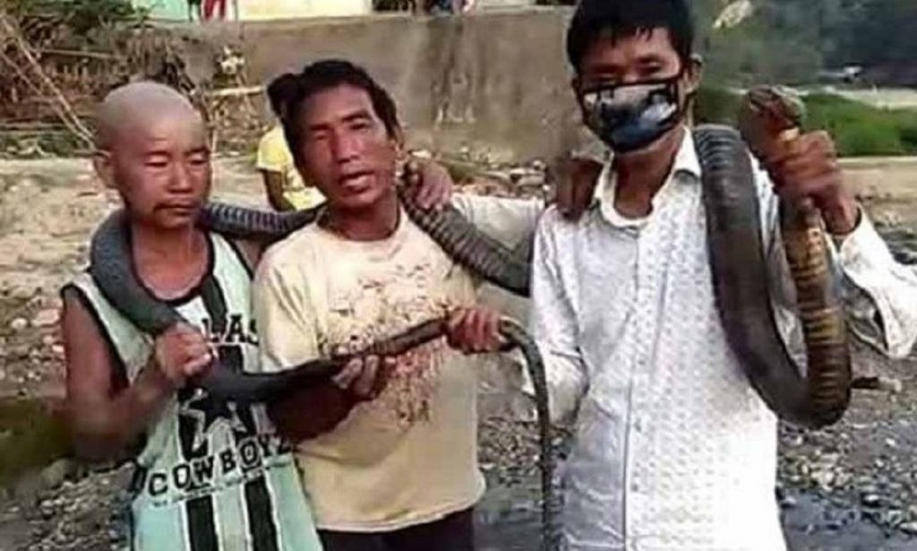 করোনাভাইরাসকে ঠেকাতে ভারতজুড়ে টানা লকডাউন চলছে। ফলে কর্মহীন অসংখ্য মানুষ। ঘরে দু’বেলা দু’মুঠো খাওয়ার সংস্থান নেই অনেকেরই। কিন্তু ক্ষিদের জ্বালা বড় জ্বালা। তাই একরকম বাধ্য হয়েই ১২ ফুটের একটি বিষধর গোখরো সাপ শিকার করে খেয়েছে অরুণাচল প্রদেশের একদল শিকারি।