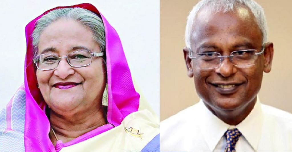 বাংলাদেশের প্রধানমন্ত্রী শেখ হাসিনাকে টেলিফোন করে ধন্যবাদ জানিয়েছেন মালদ্বীপের প্রেসিডেন্ট ইব্রাহিম মুহাম্মদ সলিহ। বুধবার বেলা ১১টায় শেখ হাসিনাকে টেলিফোন করেন মালদ্বীপের প্রেসিডেন্ট।এ সময় দুই নেতার মধ্যে কিছুসময় কথা হয়।